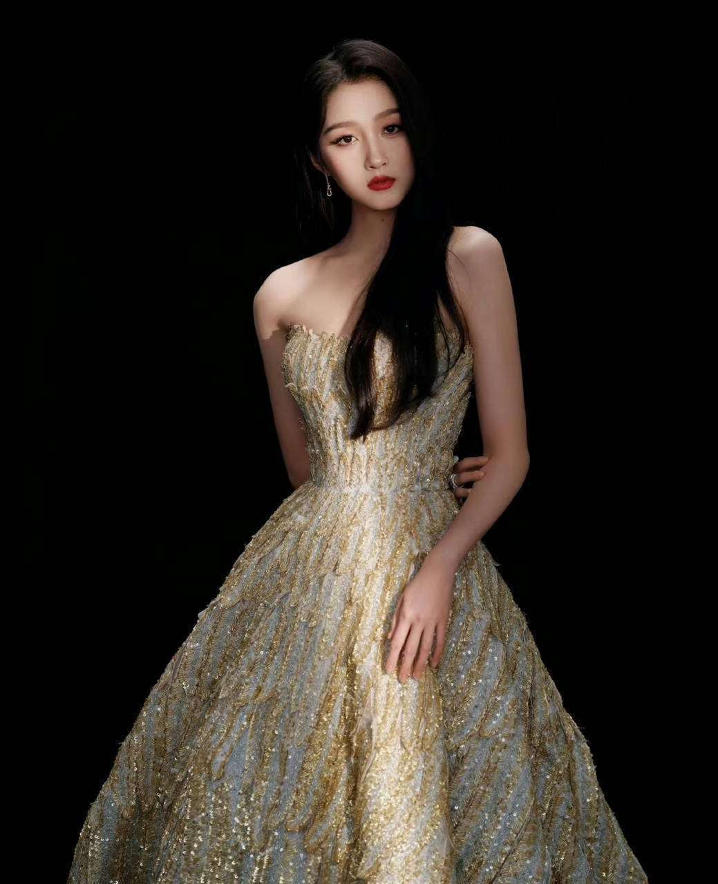 事件源于活动当天的两套礼服争议。第一套ElieSaab2025春夏高定礼服本是公认的“封神之作”,单肩设计巧妙遮住肩线,蓬松裙摆衬得她身姿窈窕,工作室放出的精修图里肌肤白皙、肩颈线条流畅,被网友盛赞“终于找对风格”。可团队临时换的第二套香槟色抹胸礼服却成了“大型翻车现场”——紧身裹胸设计不仅没凸显天鹅颈优势,反而因剪裁过紧在腋下勒出三层赘肉,电视镜头切换到她颁奖的瞬间,副乳问题被无限放大,连网友都忍不住调侃:“造型师是把‘显瘦’两个字抛到脑后了吗?”更尴尬的是生图与精修图的巨大反差。工作室发布的照片里,关晓彤宛如优雅白天鹅,副乳痕迹被完美P掉;但现场媒体镜头下,她的肩膀显得圆润厚实,礼服边缘的褶皱更让身材短板雪上加霜。这种“一键瘦身”的修图操作引发群嘲:“现在连明星团队都懒得走心了?至少把腋下的肉肉P干净吧!”事实上,副乳问题在女明星中并不罕见,哪怕是瘦到纸片人的Angelababy也曾中招,但关晓彤团队似乎总在重复同样的错误——从早年被吐槽像“东北大花袄”的红绿配长裙,到这次显壮的抹胸礼服,过度追求高级感却忽略她肩宽、胸腔厚的体型特点,导致好身材反而被劣质剪裁拖累。
